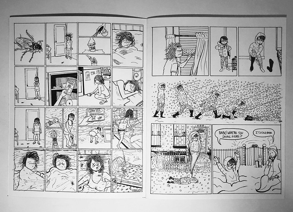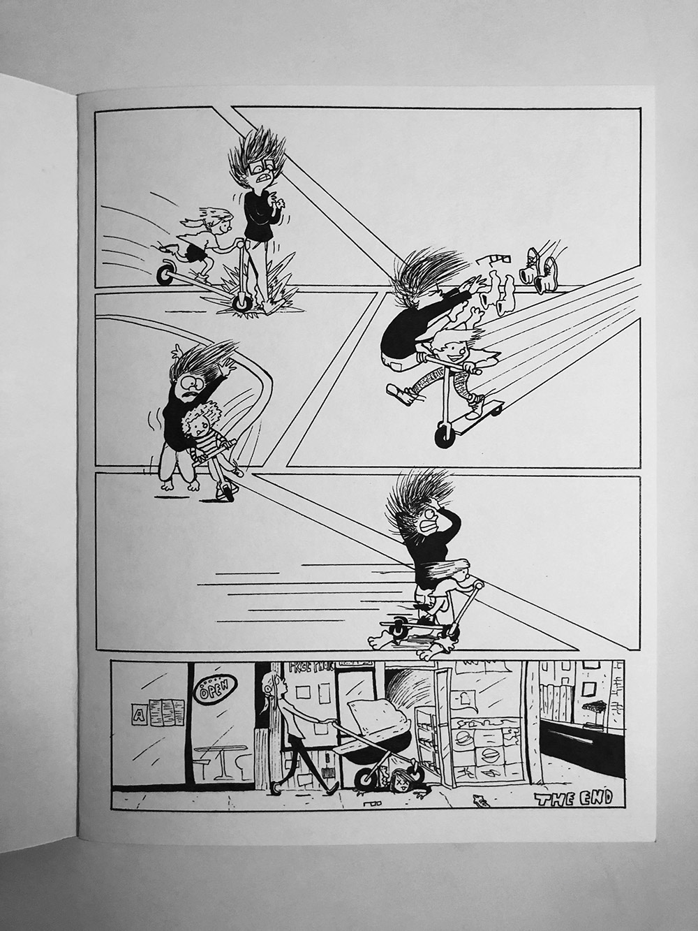 Death by Toilet Paper is a collection of anxiety-fueled death fantasties. Each page depicts a single death caused by ordinary menaces run wild — from cockroaches to toilet paper to break dancers. 16 pgs. Created by Amy Cheng and Sean Murphy.