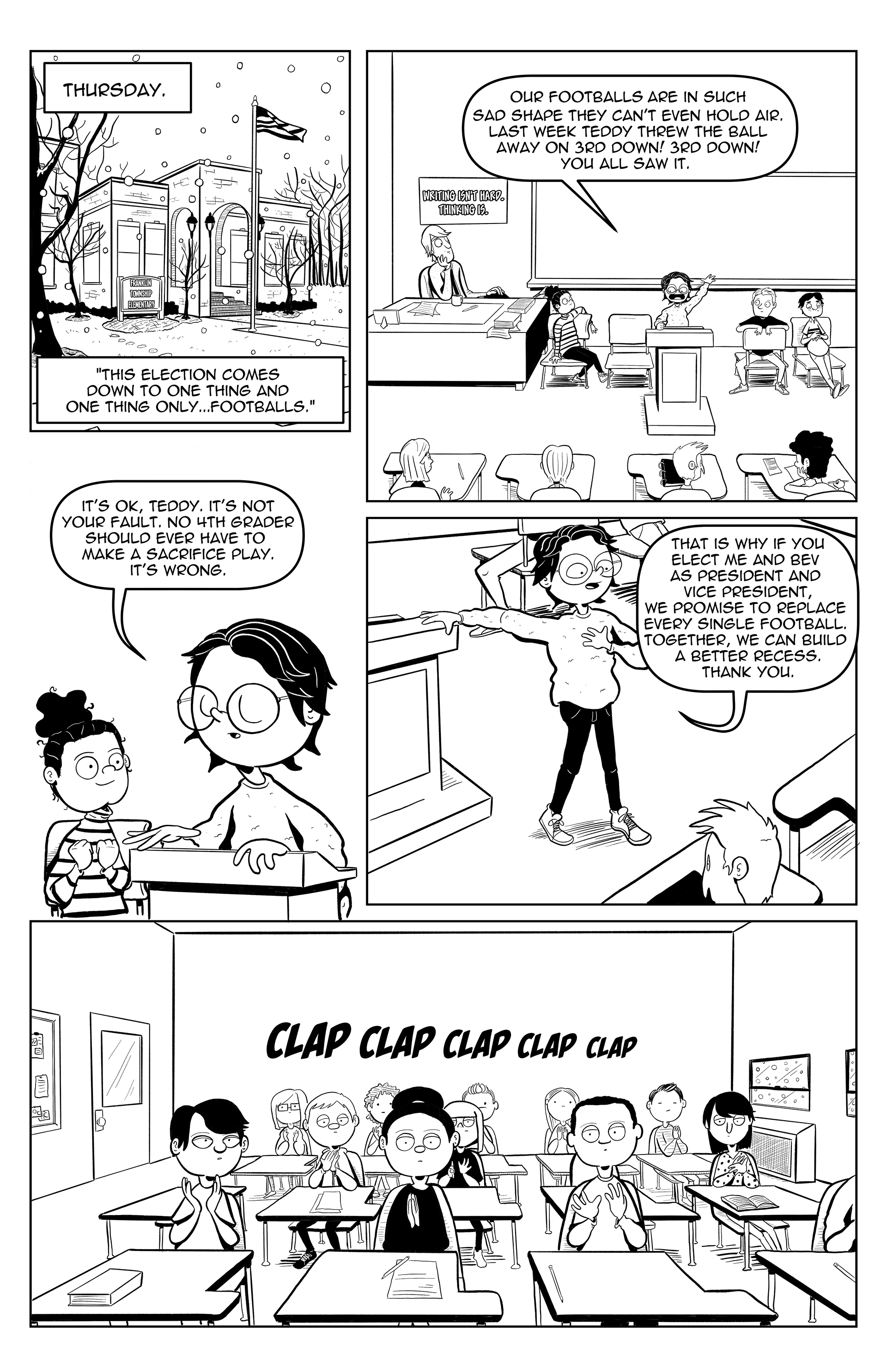 In a madcap effort to win the class presidency, two fourth-grade girls embark on a wild sled ride, full of twists, turns, and slapstick. 20 pgs. Created by Sean Murphy.
